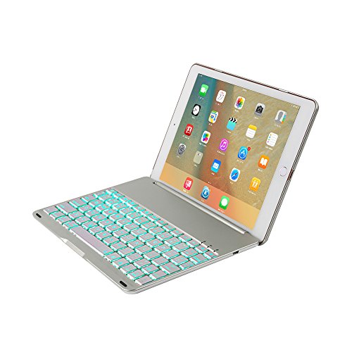 iPad Mini 4 Keyboard Case,TechCode 7 Colors LED Backlit Bluetooth Wireless Keyboard Case Smart Stand Colorful Case for iPad Mini 4 7.9 inch Tablet(iPad Mini 4, Sliver)