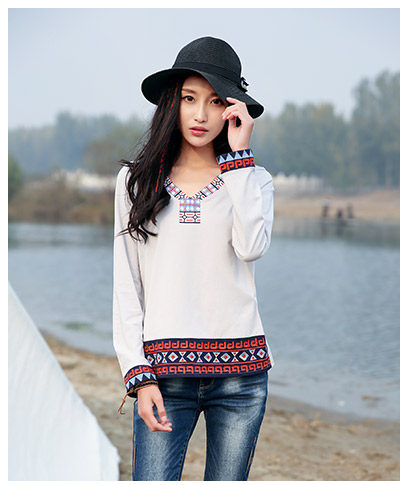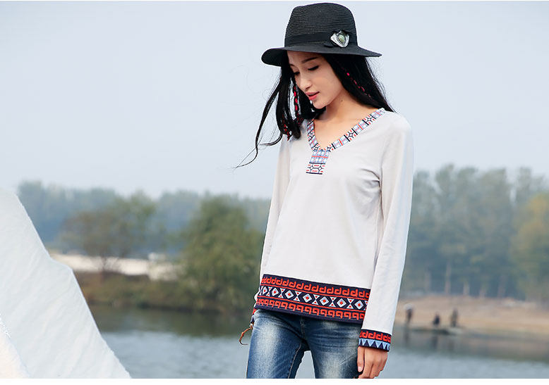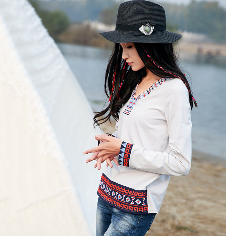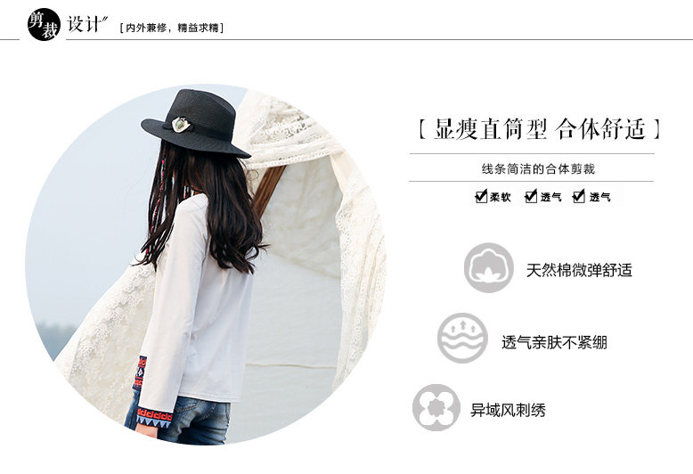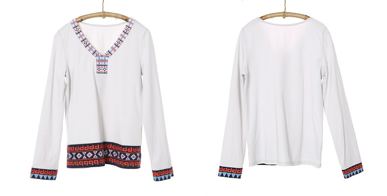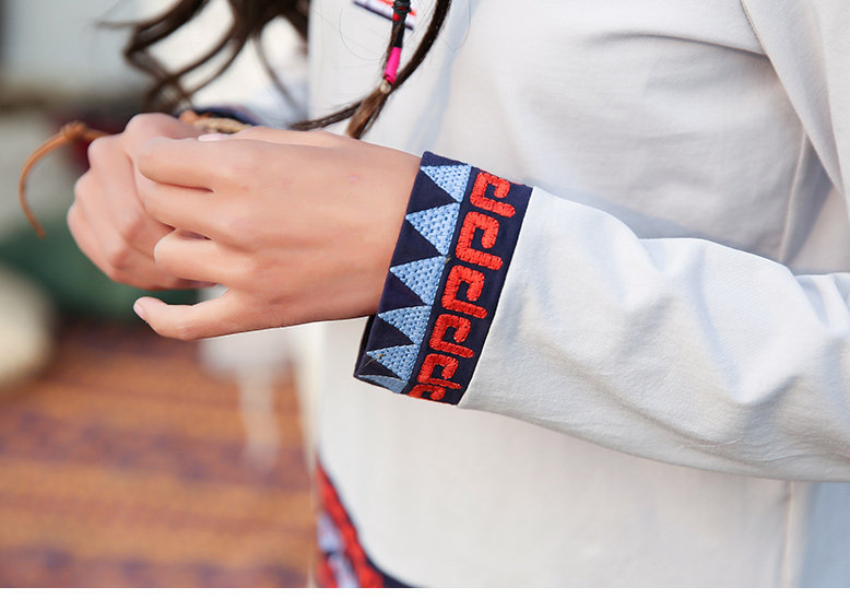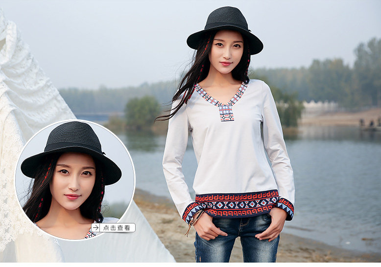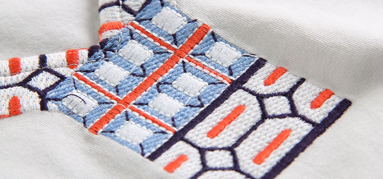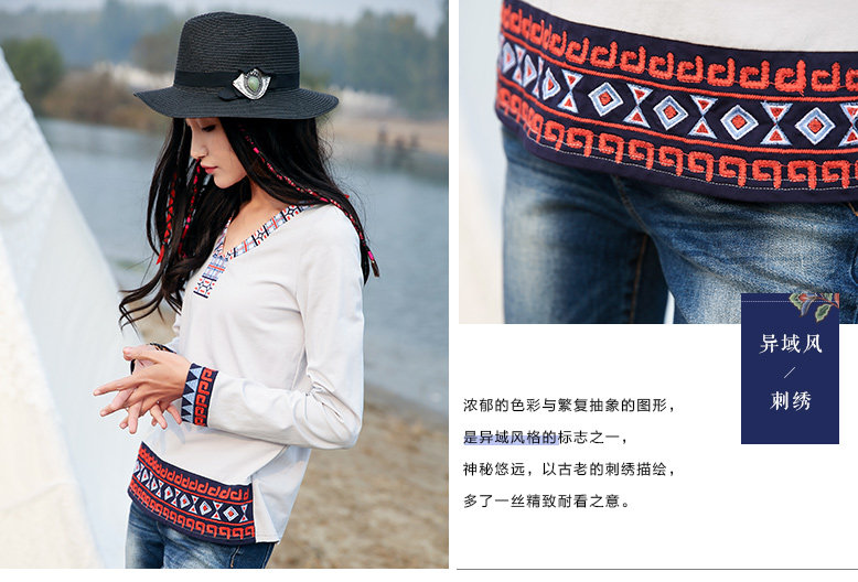 刺绣装饰  异域风刺绣装饰领口、袖口、底摆,细腻精美,相互呼应,颇具整体美感