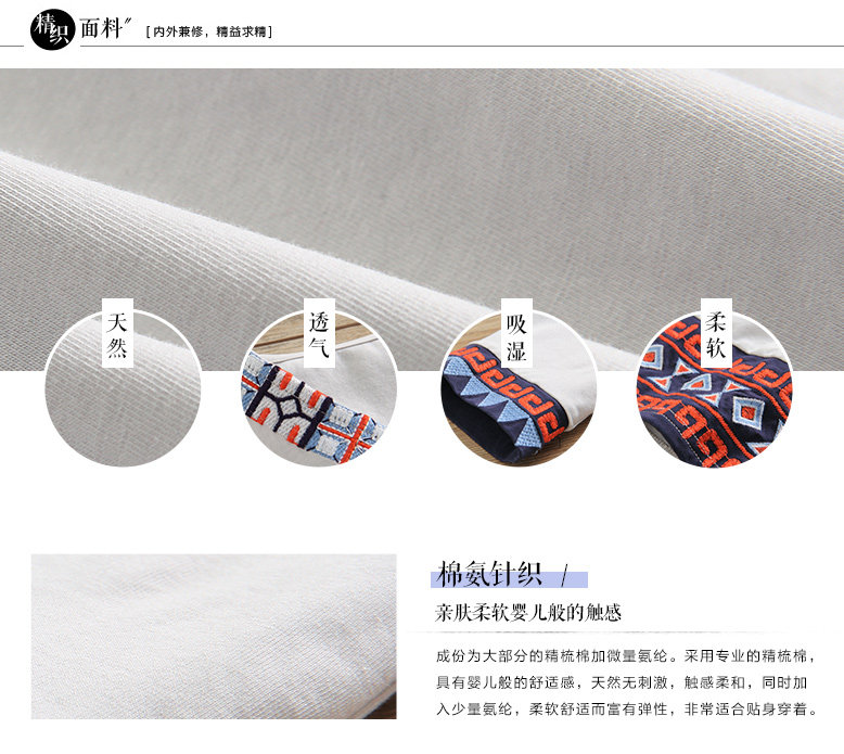 面料天然棉感舒适,穿着柔软透气而富有弹力,非常适合贴身穿着 柔软针织
