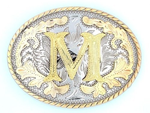 Initial "M" Letter Oval Gold Silver Rodeo Western Cowboy Metal Belt Buckle