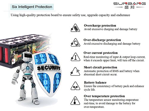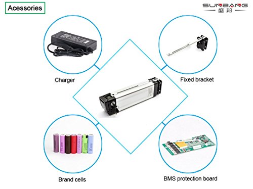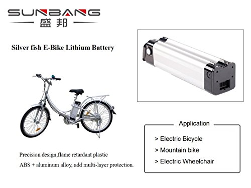 Studio : Shenzhen Sunbang Technology Co., Ltd Publisher : Shenzhen Sunbang Technology Co., Ltd Product Description Specification : Cell Brand:Samsung ICR18650-26 strictly according to IEC62133(CB), SGS,ROHS, MSDS, UN38.3 regulation Place of manufacture: China Nominal voltage: 36V (Mind the voltage of your controller) Really Rated capacity: 10.4Ah Operating temperature: Charge: :0 to 60℃, Discharge: -20 to 60℃ Storage temperature: 1 month: -10 to 45℃, 3 month: -5 to 35℃ Operating current: 15A Peak current: 20A Size: 15.35*4.33*2.95(in) Weight: 7.72LB ? AC Charger Specification: 1.Output: 42V Max. DC 2A 2.Input: 100- 240V AC 3.Safety Certification: CE Rohs GS Packing List: 1x battery 1x battery holder 1x charger 2x keys 1x power cord 1x charger manual Notice: Please check the compatiblity between your electric bicycle motor and our battery prior to purchase The battery is highly recommended to be used with the charger that comes within the package as they are compatible with each other