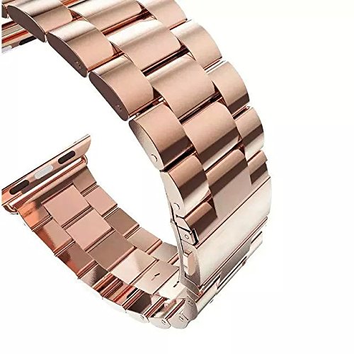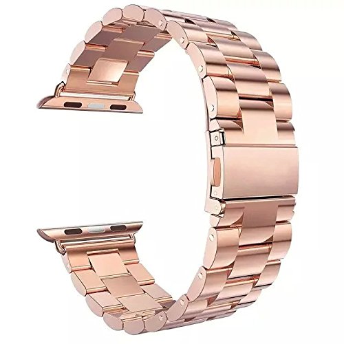 -. Title : Apple Watch Band, Stainless Steel Metal Replacement Smart Watch Band with Double Button Folding Clasp for all Apple Watch (Stainless Steel Silver) (Rose Gold 42mm)