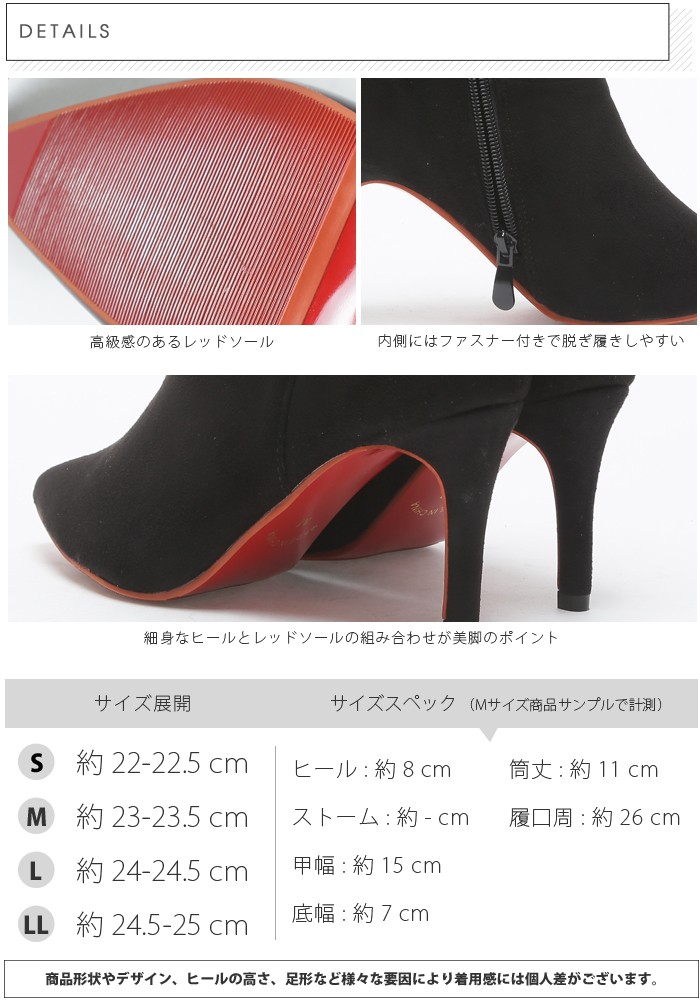 細身なヒールとレッドソールの組み合わせが美脚のポイント。
