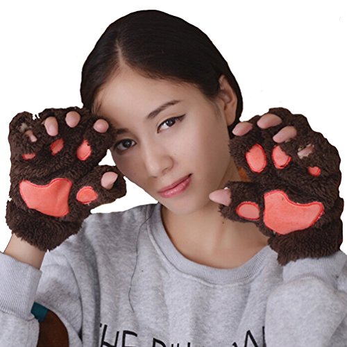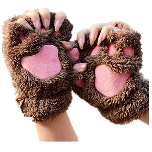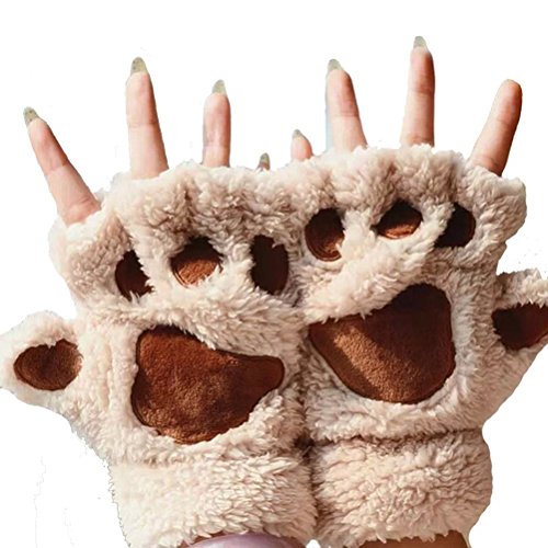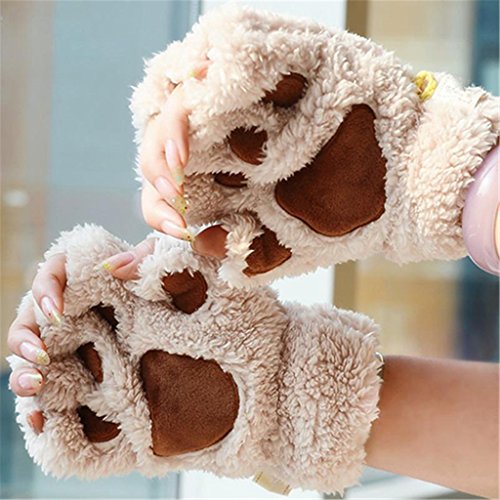 Type: Gloves andamp; Mittens Material: Plush, Spandex Gender: Women's Style: Fashion,Cute Features:Half-covered,warm,Bear Paw Style