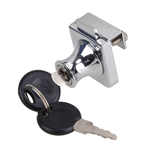 -. Feature : Cabinet Showcase Glass Door Lock / Chrome plated steel showcase and pass-thru window lock / Fits up to 3mm-10mm/0.12"-0.39" thick glass / Adds style and security to stereo cabinets and showcases with glass doors