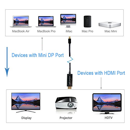 Higher Quality: Portable cable (Adapter) for connecting a Mini DisplayPort (Mini DP or mDP)/Thunderbolt 2 port compatible computer to an HDTV, monitor, or projector with HDMI Male port.