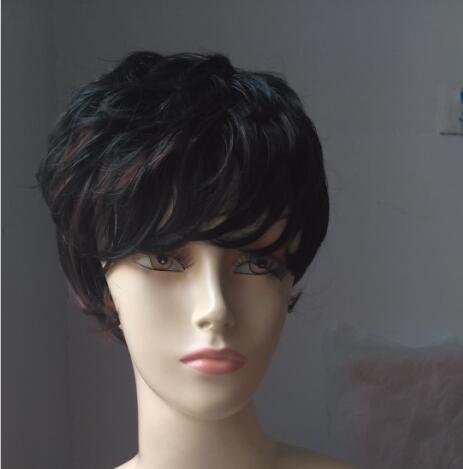 Ombre Black mixed Brown Full Wig Short Natural Wavy Heat Temperature Synthetic Fibre for America Black Women (Black mixed brown)