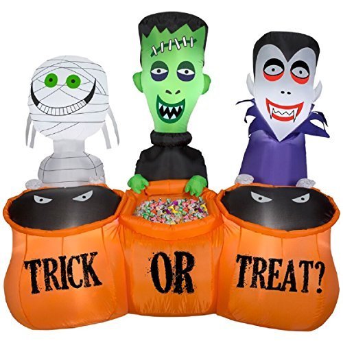 -. Title : Gemmy Trick or Treaters Mummy, Frankenstein, and Vampire Trio Scene - Lighted Halloween Yard Decoration, 5-foot Wide and Over 4.5-foot Tall