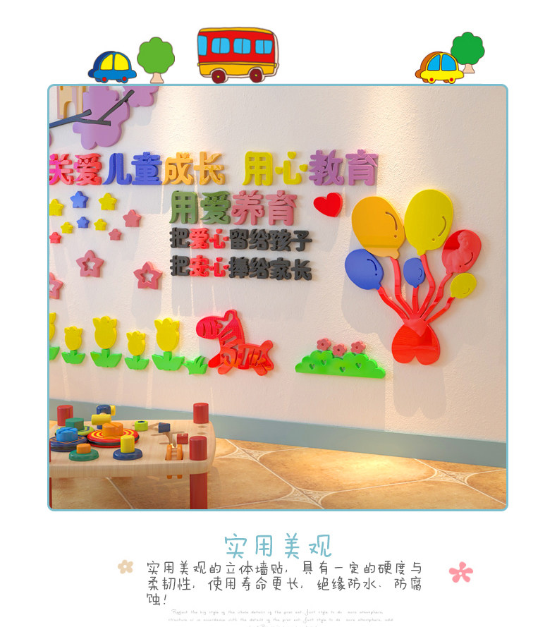 早教中心装饰墙贴画幼儿园教育机构墙面布置墙贴3d亚克力立体墙贴