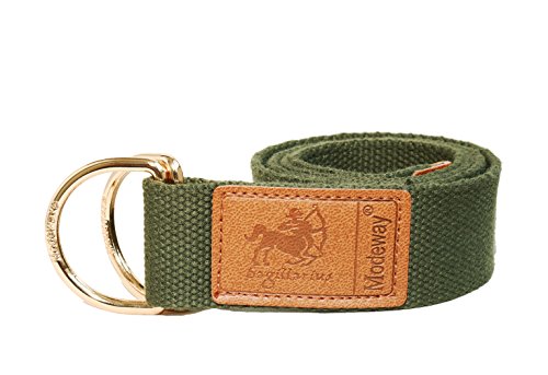 Modeway Canvas Web Double D-Ring Belt, firm center buckle,slide and fit,will hold its place comfortable fitting.Reinforced for long lasting use.Detail stitched strap flexible for best comfort,great for heavy duty use.Comes in 3 different sizes,great fitting options for everyone!inquire within for any sizing questions.Modeway Womens Mens Star Sign Canvas Web Double D-Ring Leather Gold Buckle Belt Size Table: