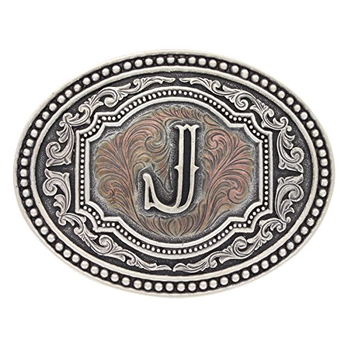 Studio : Montana Silversmiths Publisher : Montana Silversmiths Binding : Apparel Product Description It's An Attitude Buckle At Its Personalized Best. A Cast Antiqued Two Toned Oval Buckle With A Center Of Rose Gold Highlighting The Silver Finished 'J' In Its Center. The Rose Gold Center Is Framed By Pinpoints With Curving Scrollwork Design Contrasting The Structured Frame. An Outer Edge Of Large Antiqued Silver Finished Pinpoints Finishes The Design. Standard 1.5 Inch Belt Swivel. 0