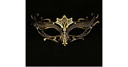 -. Feature : Yacanna Masks are crafted with Intricate Metal Laser Cut Technology and finishes with delicate Brilliant Cut Rhinestones. / Metal is bendable so wearer can adjust fit. / The mask is secured to the face with two satin ribbons ties on both sides of the mask. / Glossy Gold Finish with clear Diamond color Rhinestones. / Recommended for Venetian, Carnival, Mardi Gras, Wedding, Halloween, Costume theme Party Prom and More!