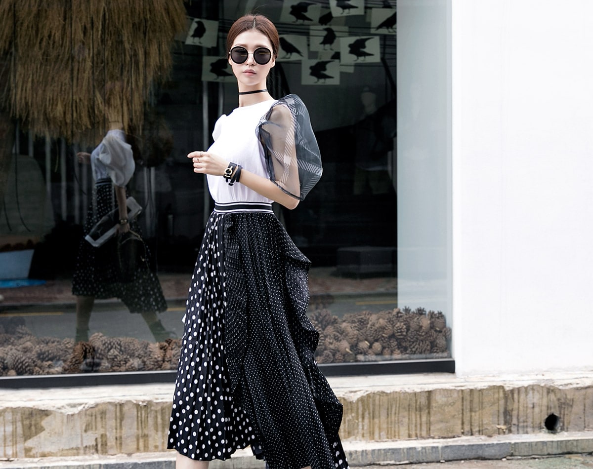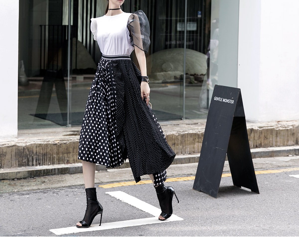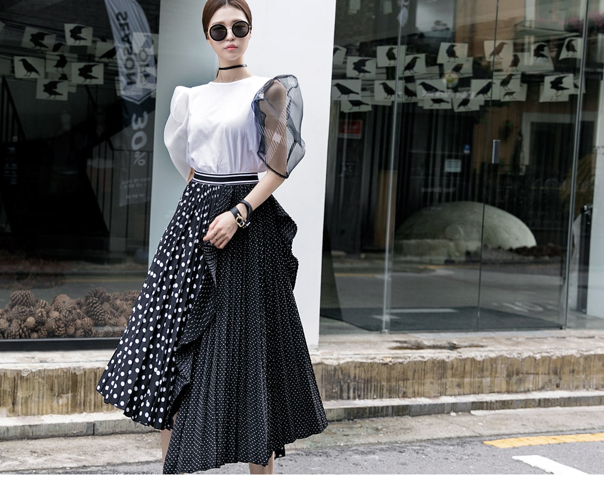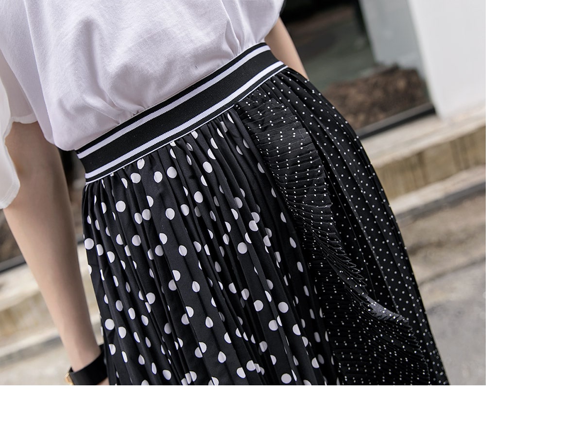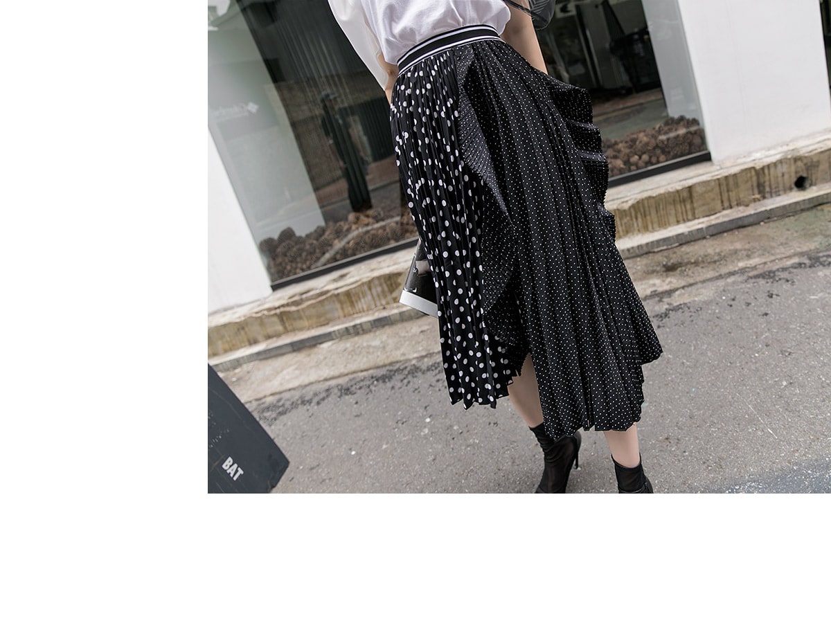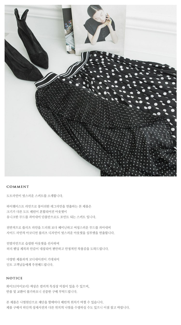 SK1730 언발 도트 플리츠 라인 스커트 Black