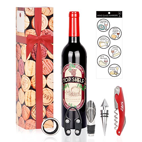 Package Content: 1x Corkscrew Opener 1x Bottle Wrap Cutter 1x Wine Stopper 1x Aerator Pourer 1x Drip Ring 1x glass markers static cling reusable sticker set