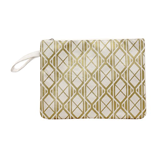 Makena Glamour Diamond Gold White 12 x 9 Inch Polyester Lined Beach Bikini Bag