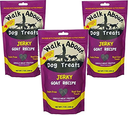 -. Binding : Misc. -. Brand : Walk About Pet Treats -. EAN : 0852896006051 -. Feature : (3 Pack) Walk About Dog Treat Jerky Goat - 7oz each / Exotic Proteins / Hypo-allergenic / Made in Australia / All natural -. Label : Walk About Pet Treats -. Manufacturer : Walk About Pet Treats -. MPN : WA10002 -. PackageQuantity : 3 -. PartNumber : WA10002 -. ProductGroup : Pet Products -. ProductTypeName : PET_SUPPLIES -. Publisher : Walk About Pet Treats -. Studio : Walk About Pet Treats -. Title : (3 Pack) Walk About Dog Treat Jerky Goat - 7oz each -. UPC : 852896006051