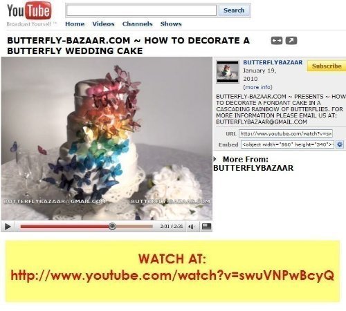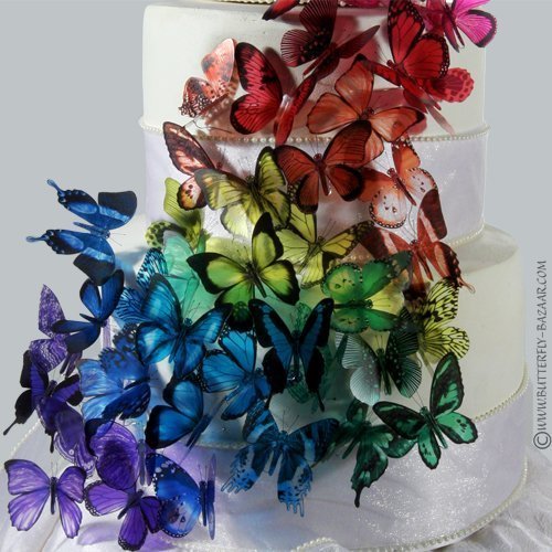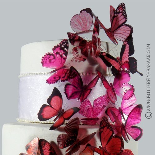 - Feature : PLEASE READ PRODUCT DESCRIPTION / WATCH http://www.youtube.com/watch?v=swuVNPwBcyQ HOW TO DECORATE A BUTTERFLY WEDDING CAKE ~ BUTTERFLY-BAZAAR.COM / REAL Faux 3D Artificial Butterflies, REAL LOOKING ANTENNAE, Waterproof plastic, Precise and perfectly cut out. Translucent ~ Light gleams through their wings! / Perfect for Butterfly Wedding Cakes, birthdays, parties, holidays, scrapbooking and wall art decoration, making jewelry, home décor, floral bouquets, creative card making, gifts, anything you can imagine! / Shipped flat, bend wings back to create realistic 3D effect