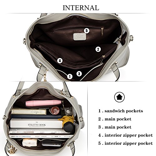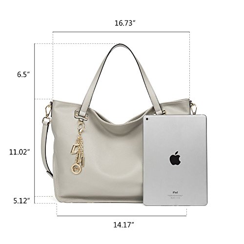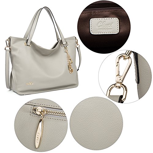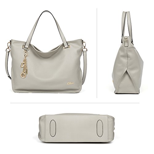 -. Title : Cluci Genuine Leather Handbags Purse Tote Cross-body Shoulder Bags for Women Light Gray