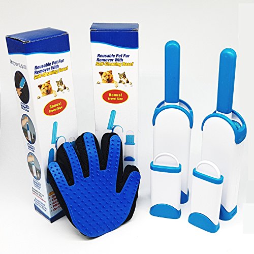 2 X Fur Wizard lint brush 2 X Self-cleaning base 2 X Travel size lint brush and base 1 X Pet Grooming Glove