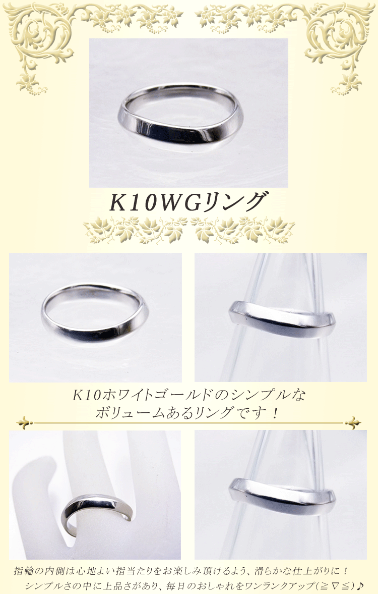 商品説明 ホワイトゴールドのボリュームあるシンプルなデザインリングで、普段使いにお勧めです。