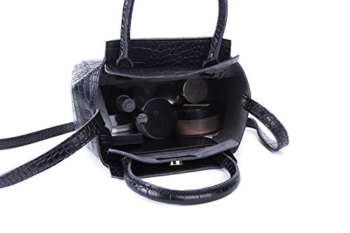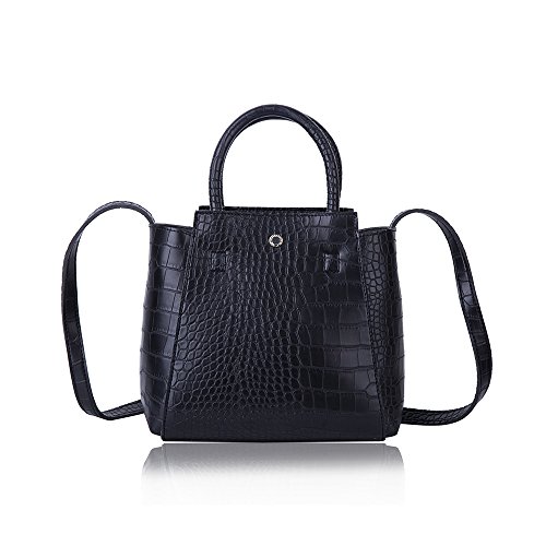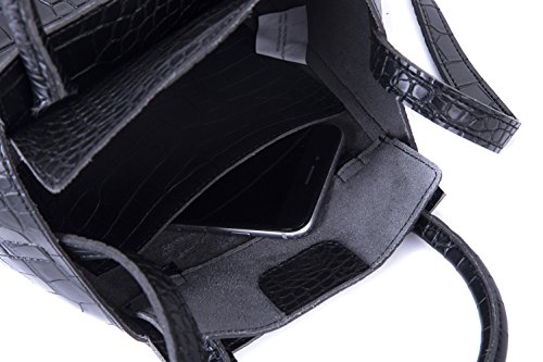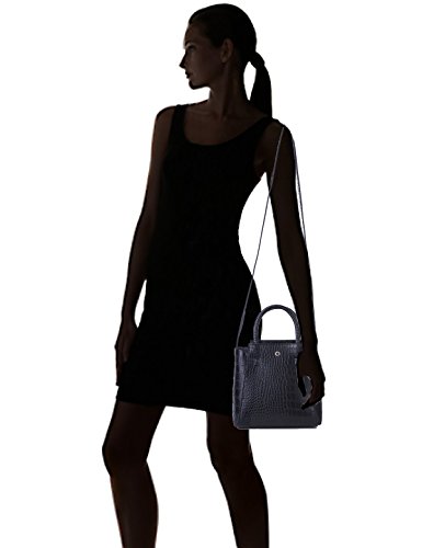 Unlined tote. Magnetic closure. Double handles. X-body strap. Inside hanging pocket. Front logo stud.