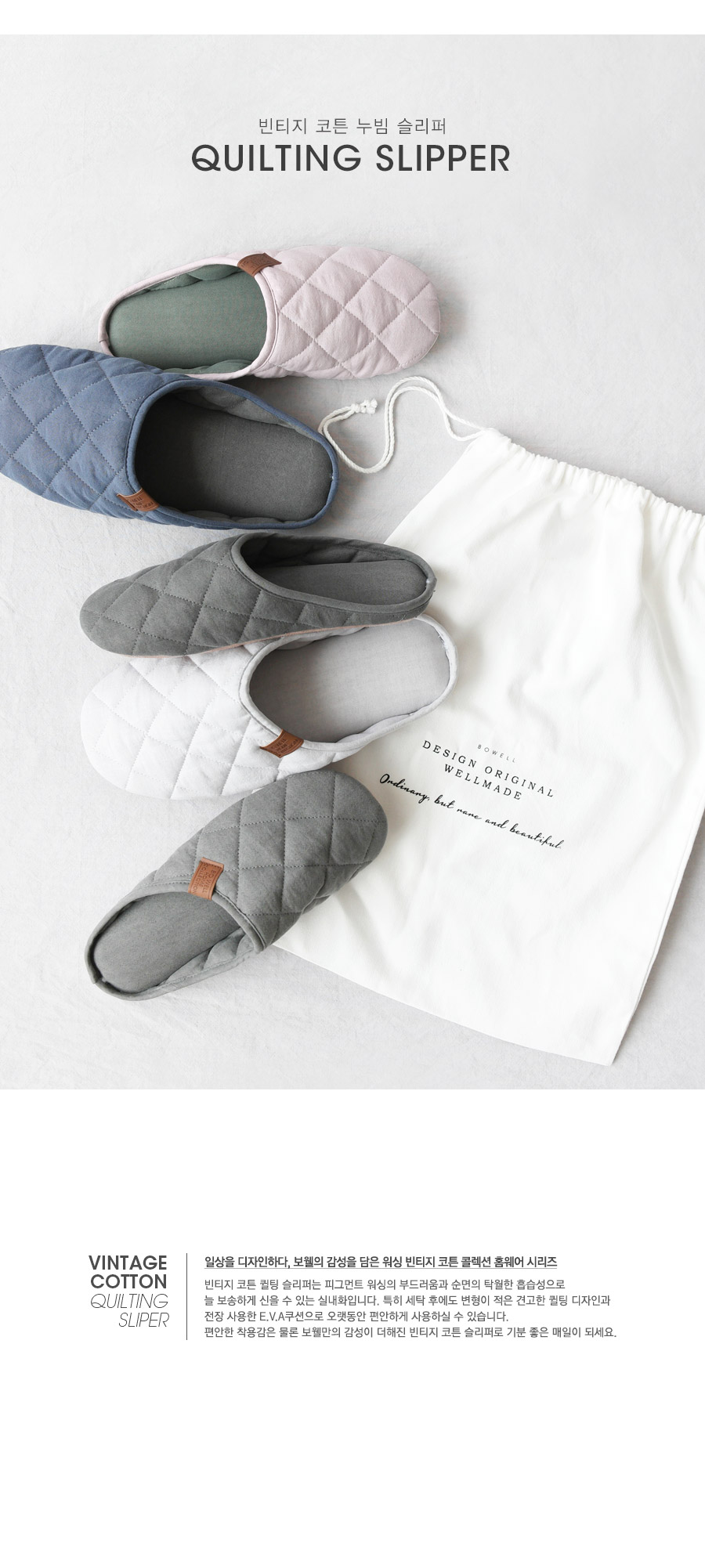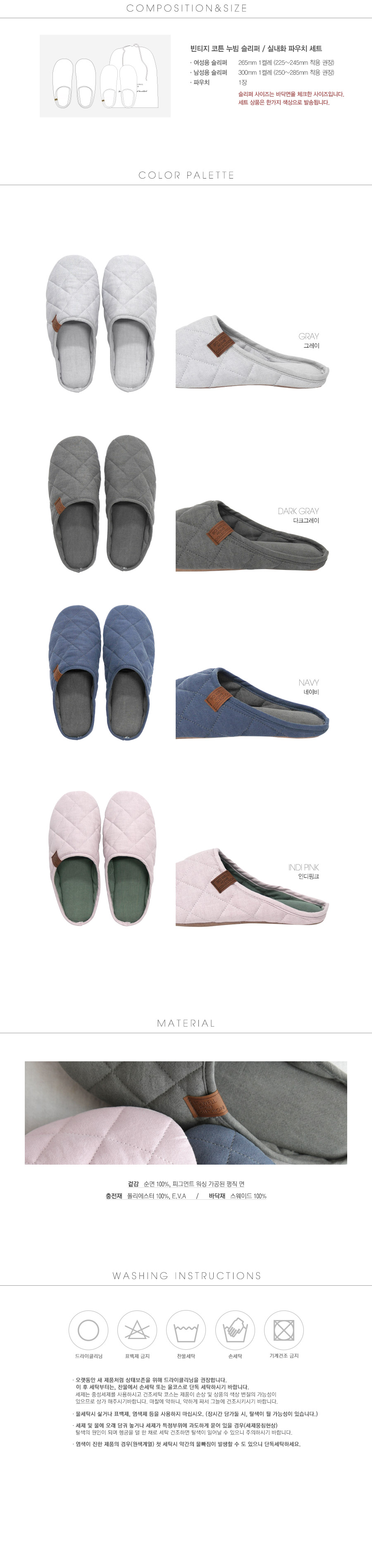 보웰 기프트 [빈티지코튼 슬리퍼 세트] 여성용1켤레, 남성용 1켤레, 코튼파우치 1장