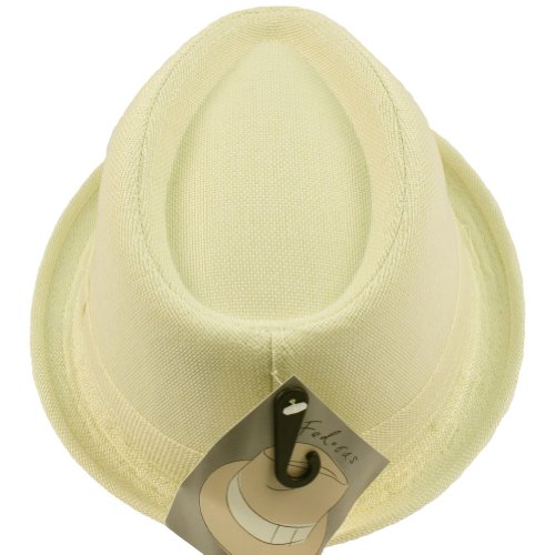 -. Feature : Fabrication: 100% Polyester / Style#: fedora_afd3353 / Size: One Size (Head measurement: 56cm, 22, 7) / Brim: 1" Height: 4-1/2" / Color: Ivory (as shown, other colors available in our store)