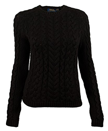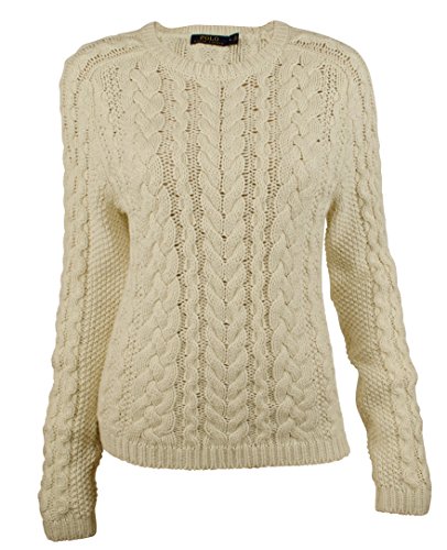 Polo Ralph Lauren's crewneck cable-knit sweater; Long sleeves with ribbed cuffs; Ribbed hem; Cotton.