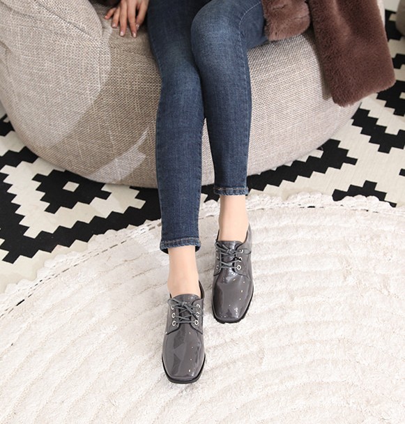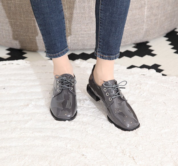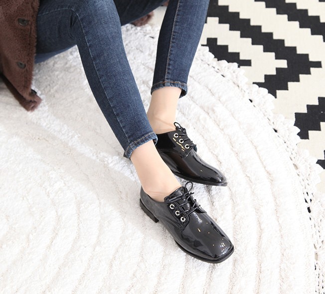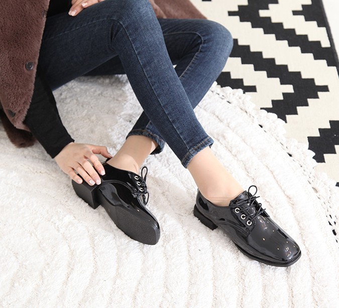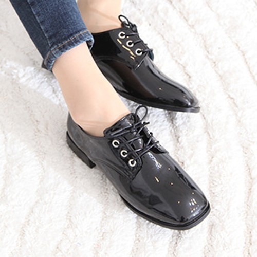 商品名:ローファー レディース エナメル調 レースアップ マニッシュ 2017 秋 冬 ファッション 靴 婦人靴