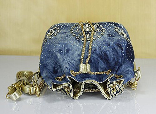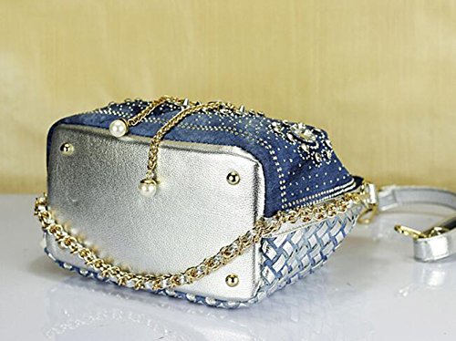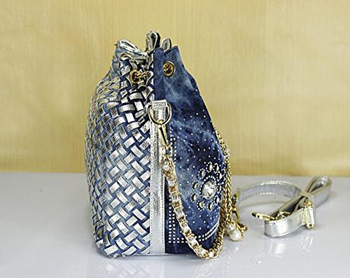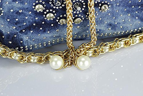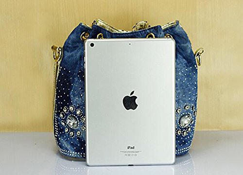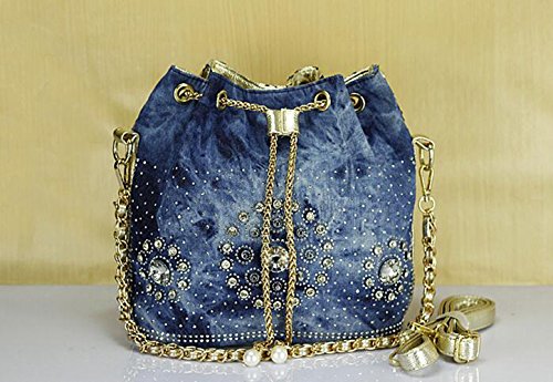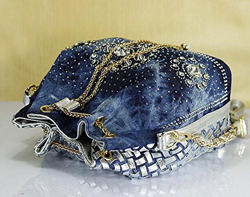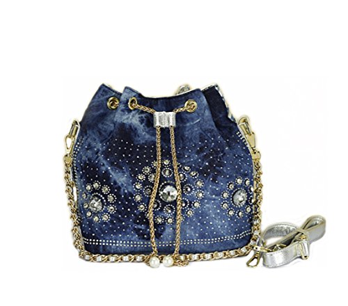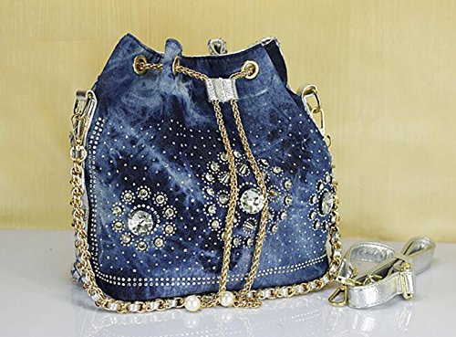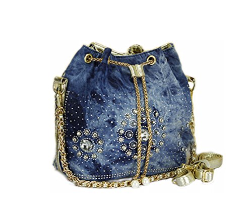 (Traum Starter)/Accessories/Handbags/DIRECT FROM USA/New Denim Diamond Floral Bucket Drawstring Shoulder Bag with Long Chain