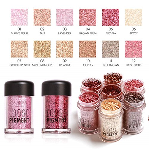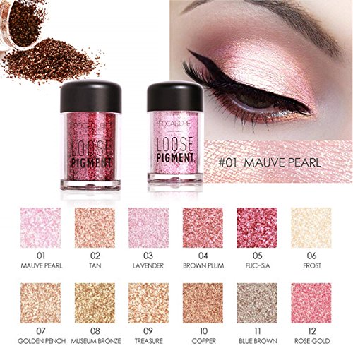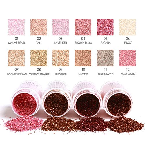 -. Binding : Misc. -. Brand : FUNOC -. Feature : Resembles Crushed Diamonds,Ultra Super fine Glitter Powder Eye Shadow,makes your skin glow luminously / Create Colorful and Personalized Effect,with this set, you will be more attractive! / Use as an eye shadow or add to your cheekbones to brighten up your complexion, 12 different color will satisfy your needs in different occasions / Cosmetic Grade Loose Powder Glitter,effectively highlight the face contour, a bridge of the nose, pretty forehead, chin, brighten eye highlight / Healthy ingredient, you don't need to wear a lot although little bottle with a little wipe would work for the whole eye, less is more.Package include:1*Eyeshadow(you choose colors). -. IsAdultProduct : 0 -. ProductGroup : Beauty -. ProductTypeName : BEAUTY -. Title : Glitter Eyeshadow Makeup Palette - 12 Color Loose Pigment Waterproof Shimmer Glitter Powder Makeup Diamond Eyeshadow Highlighter
