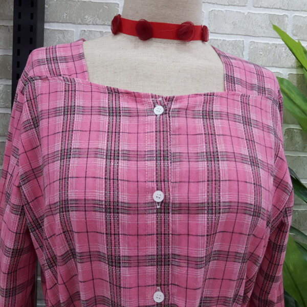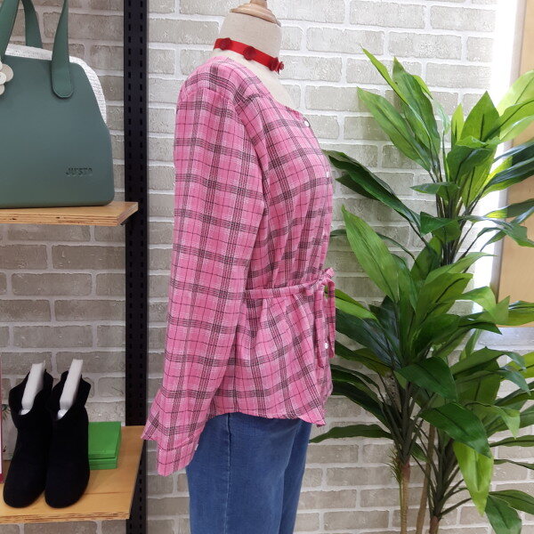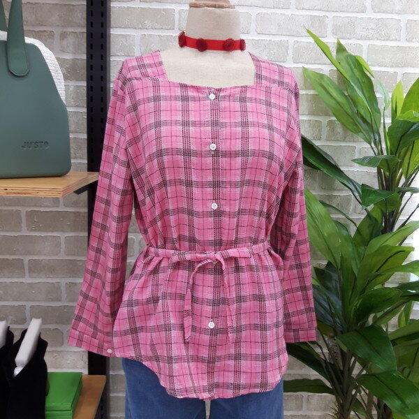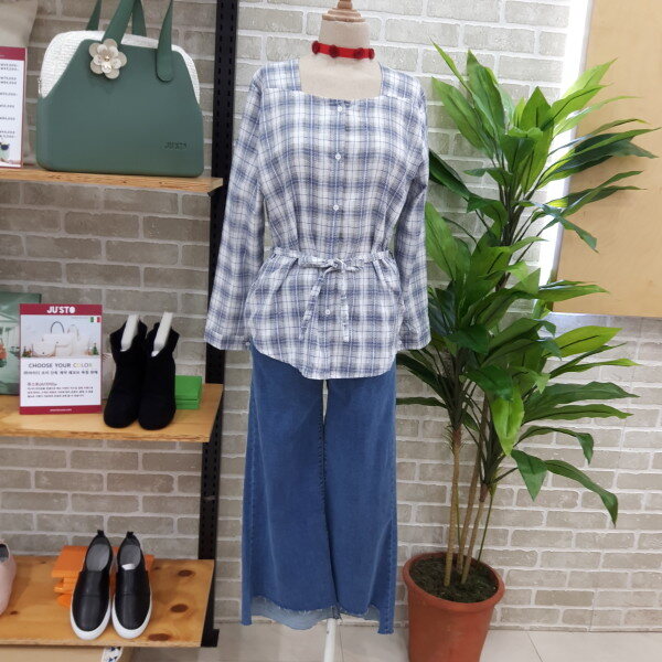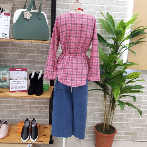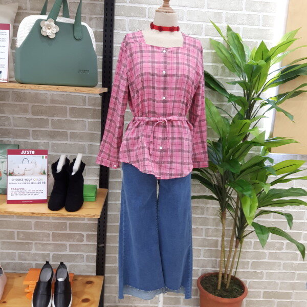 넥라인이 스퀘어넥으로 다아하면서도 여성스러운 디자인의 체크블라우스 입니다러블리한 체크블라우스로 허리라인에 끈이 있어 허리선을 강조할수 있는 스타일입니다