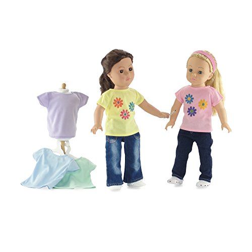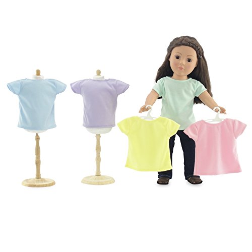 -. Feature : Made to fit 18 Inch dolls such as American Girl, Madame Alexander, Our Generation, etc. / Gift-Boxed! Packaged in classy pink gift box with Emily Rose logo. / Includes 5 soft cool pastel color T-shirts, each in a different color: Green, yellow, purple, pink and blue. / Designed and manufactured by Emily Rose Doll ClothesTM. Luxurious high quality fabrics, washable, safety tested.