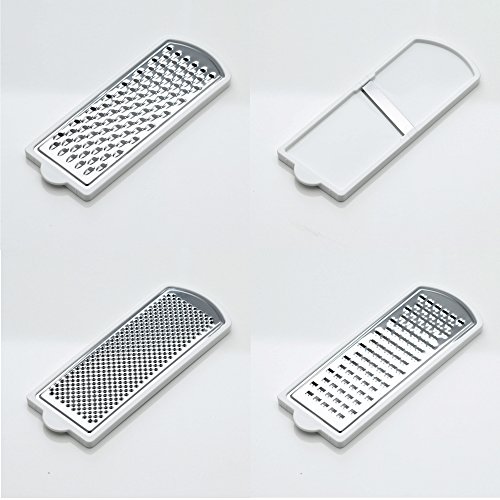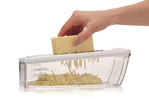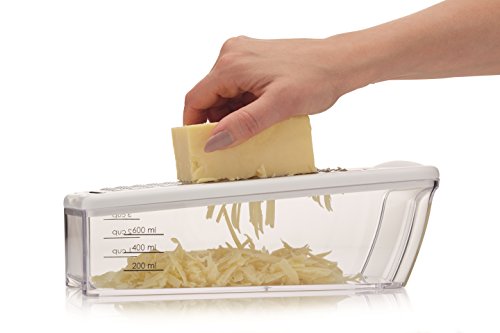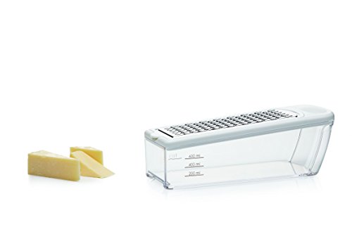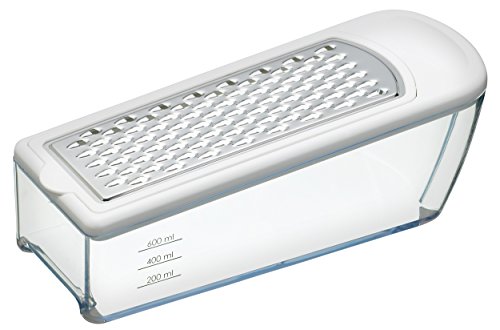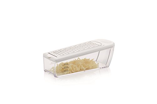 This multi purpose grater and storer set includes four interchangeable stainless steel blades for coarse and fine grating, zesting and slicing, plus a useful collecting base.