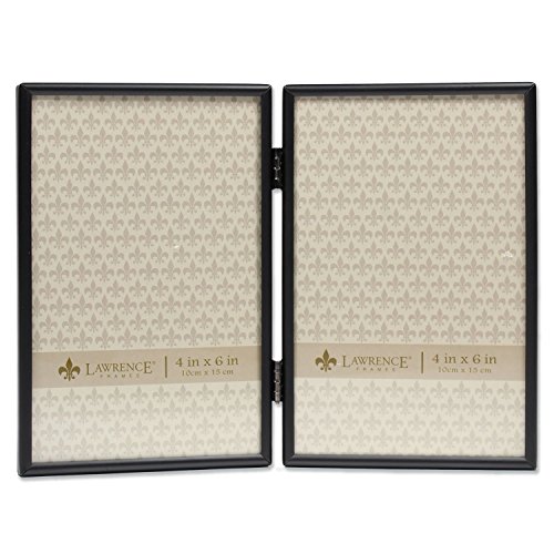 -. Binding : Misc. -. Brand : Lawrence Frames -. Color : Black -. EAN : 0751148070034 -. Feature : Contemporary black metal Frame that will compliment any decor / High quality black velvet backing / Vertical tabletop display or can be hung on a wall with installed hangers / Wipe clean with dry cloth, glass Included / Holds two 4 inch by 6 inch vertical Photos -. Label : Lawrence Frames -. Manufacturer : Lawrence Frames -. Model : 660046D -. MPN : 660046D -. PackageQuantity : 1 -. PartNumber : 660046D -. ProductGroup : Home -. ProductTypeName : HOME -. ProductTypeSubcategory : other-professional-frames -. Publisher : Lawrence Frames -. Studio : Lawrence Frames -. Title : 4x6 Hinged double Simply black Picture Frame -. UPC : 751148070034