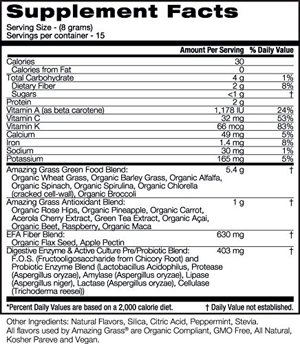 Studio : Amazing Grass Publisher : Amazing Grass Binding : Grocery Product Description This thoughtfully crafted blend combines our alkalizing farm fresh greens and wholesome fruits and veggies plus nutrient-rich superfoods with a creamy orange flavor for a delicious way to feel amazing every day. At Amazing Grass our roots run deep...Back to our family farm in Kansas, where for over 3 generations Amazing Grass has organically grown harvested the most nutrient-dense greens on earth. Today, we thoughtfully craft our greens with the highest quality, plant-based ingredients curated from like-minded farmers from around the world. Amazing Grass products are a delicious way to nourish your body with the whole food nutrition it needs to feel amazing every day. 0