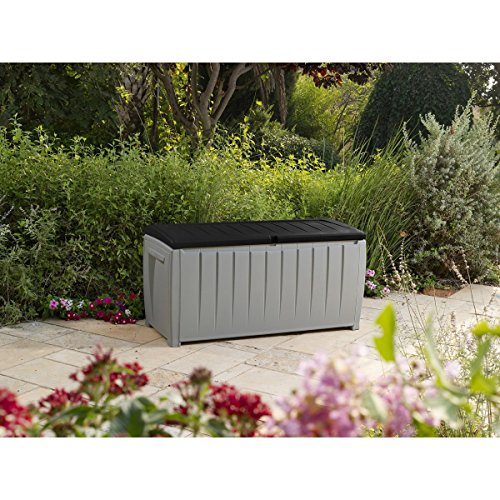 Top Selling Solid Plastic Weather Proof Two-Tone Black Gray 90-Gallon Lightweight Storage Conta...