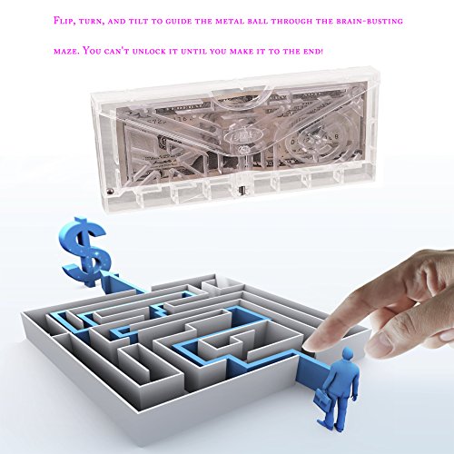 * Maze box use to store money and coins. The maze box can only be opened when the maze is solved. * The Money Maze Bank is a great place to hold your cash, gift cards and cheques, but there's a twist - you have to guide the steel ball through the maze to get your stuff out again! * For gift giving try placing money or a gift inside, then watch the recipient solve the maze to receive your gift! * Have fun for deposit! * It's easy to make a deposit, but difficult to make a withdrawal! * The only way to open it (or make a withdrawal) is to maneuver the ball bearing through the maze to pop open the lid. * With a compartment inside which could hold coins, small gifts, gift cards, letters, or even an engagement ring. * Ideal birthday or Christmas gift for your kids and friends . * Ideal intelligent development toy and stress releasing tool . * A money bank makes saving money more fun . * Easy to make a deposit, but difficult to make a withdrawal . * Great ornament on desk and an ideal intellectual toy for stress releasing . Great Ideas for Anyone Turn cheap Christmas or birthday gift ideas into something exciting and intriguing. Your friends and family will be so happy that you put a little extra effort into their special moment. Plus, you can easily adjust the degree of difficulty. Start Your Stockload Today It's fun and it's fresh! Order a few of these unique and fun boxes today! Your family and friends are sure to have a good time long after the puzzle's been solved. No More Boring Envelopes