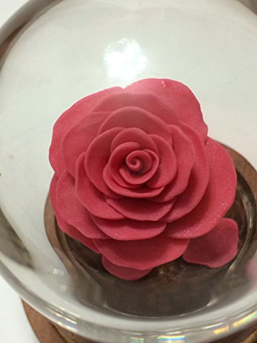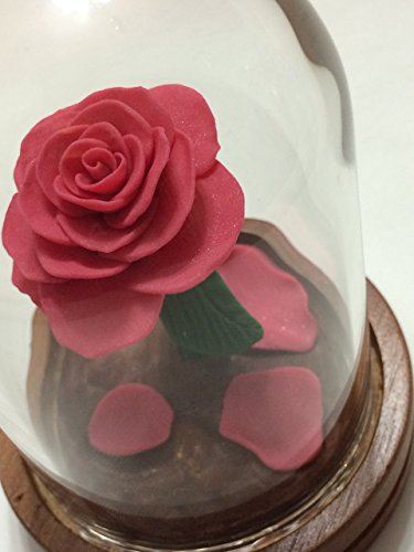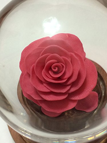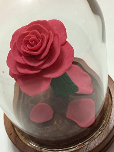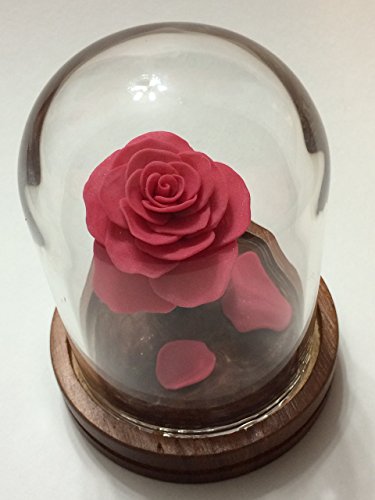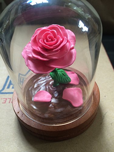 Product Description A gorgeous, full blooming Pink Rose inside a glass dome, on a wooden base. The rose glows in the dark! Inspired by the Enchanted Rose in Beauty and the Beast. This is a great gift idea, a great wedding accessory, a wonderful cake topper, or just a fantastic surprise for the Disney fan in your life. The roses are available in a variety of colors. If you'd like a special color of rose, or something special added or a certain design, please feel free to email me. The glass domes measure 5.3 inches high from the bottom of the wooden base to the top of the dome and 3.5 inches in diameter at the widest part of the base. The domes are glass. This is one solid piece, the glass does not come off the rose. Each rose is unique, an individual creation. A wonderful and unique idea for an engagement, a proposal, wedding gift, wedding cake topper, wedding decoration, graduation gift, Mothers Day, Valentine's Day, an Anniversary, a Wedding Accessory, a birthday gift, housewarming gift or just for the difficult to shop for person in your life. These items are not recommended for children. The glass is real glass. This item is not a toy. 0