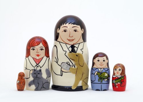 -. Title : Veterinarian 5-piece Russian Wood Nesting Doll