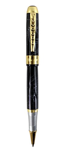 Sipliv New Style 250 Gold Trim Rollerball Pen, Black and White Line, Gift Boxed