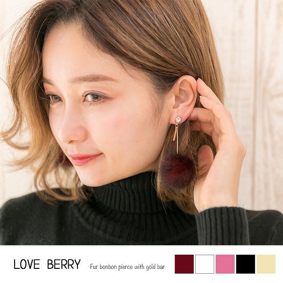 ゴールドバーとゆらゆら揺れるファーで大人可愛く上品に♪