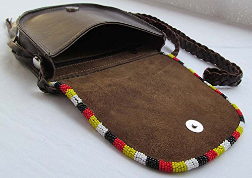 -. Brand : La vivia -. Color : brown -. Feature : beeded leatherbag. -. ProductGroup : Apparel -. ProductTypeName : LAGE -. Size : 6 -. Title : Natural Leather Women Messenger Hand bag Medallion Beaded Hand Bag LBI-3450