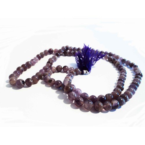 Stone beads are used to combine the powers of the stones with the meditation. The cord running through the beads symbolizes the thread of Life. Each mala has been made from small natural stone beads which are extremely difficult to make, each mala therefore is a work of art in itself and should be treated with care and respect.