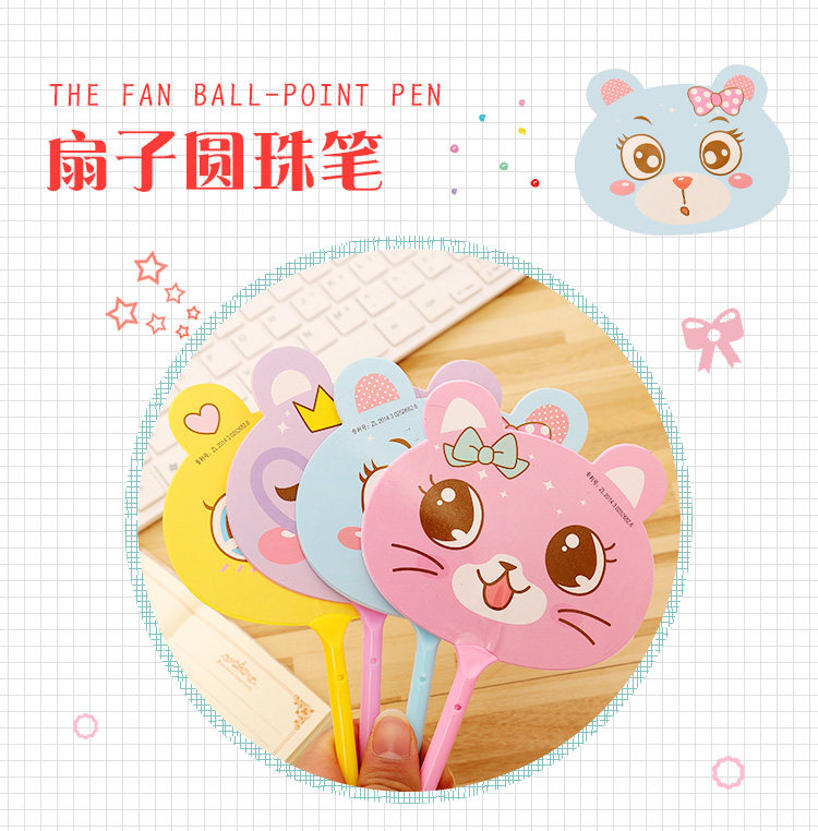 圆珠笔卡通创意卡通卡爱扇子表情写字笔学生奖品儿童可爱小扇子笔