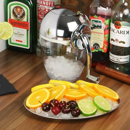 Studio : bar@drinkstuff Publisher : bar@drinkstuff Product Description Sleek and practical, the Chrome Plated Ice Crusher from bar@drinkstuff offers a stylish addition to any bar top. Its stainless steel teeth effortlessly crush ice for your cocktail, slush drink or chilled food platter. 0