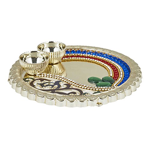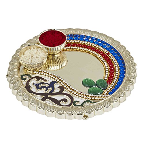 Studio : The Indian Storeroom Publisher : The Indian Storeroom Product Description The festival of Raksha Bandhan celebrates the love and duty between brothers and sisters.?It is also popularly used to celebrate any brother-sister type of relationship between men and women who may or may not be biologically related. On Raksha Bandhan, a sister ties a?rakhi?(sacred thread) on her brother's wrist with a prayer for his prosperity and happiness. This symbolizes the sister's love. This Beautiful Thali is Designed by Indian Artisan - Neeta Mehta 0