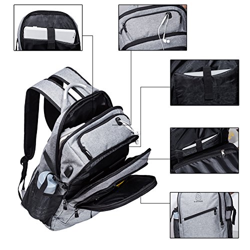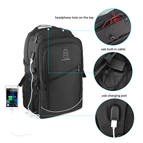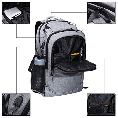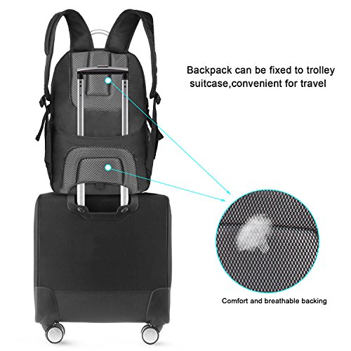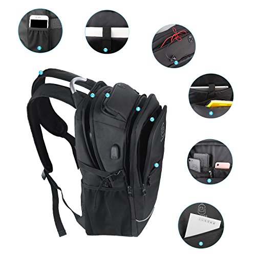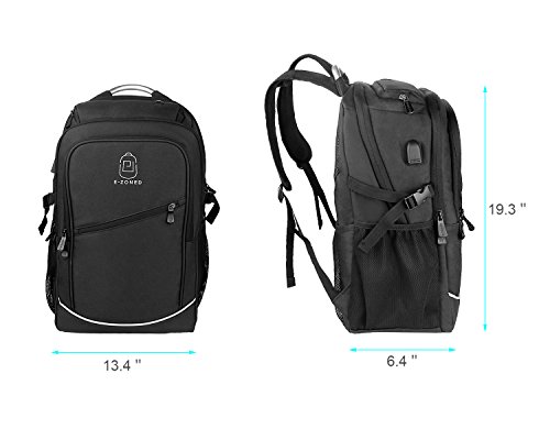 *Specifications *External Dimension:19"x13.4"x6.7"(49 x 34 x 17 cm) *Straps Length: Adjust from 19" to 34" (48 -87 cm) *Maximum laptop size:17.3" *Features: *Front compartment: inner small pockets for for Pen, Keys, Wallet. *Middle compartment:1 ipad pocket,1 zippered innner pocket. *Main compartment:very roomy for big items,such as books,clothes, with 2 small pockets for power bank. *Laptop compartment:thick foam padded shockproof compartment,fits up to 17.3 inch laptop. *Side pockets: 2 side pockets,suitable for water bottle,compact umbrella etc. *Top pocket:a small zippered pocket for glasses etc.With headphone hole design to allow you to feed headphones through. *Sturdy adjustable shoulder straps,a small pocket on the strap,and uinque handle for long-time carrying in comfort. Package Included: 1 * backpack for laptop If any question, please feel free to contact us. 0