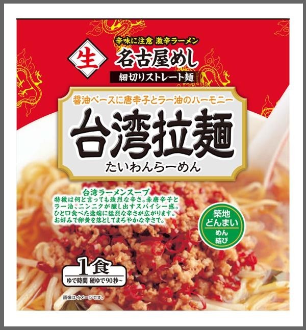 | 原材料 | 名称:生中華そば ●めん 小麦粉、食塩、酒精、かん水、貝カルシウム、クチナシ色素、加工でん粉 ●台湾まぜそばタレ なたね油、豚肉、しょう油、水あめ、豚脂、ポークエキス、食塩、にんにく、唐辛子、砂糖、さばぶし粉末、カレー粉、こしょう、調味料(アミノ酸等)、加工でんぷん、酒精、酸味料、カラメル色素(原材料の一部に小麦、大豆を含む) ●台湾ラーメンスープ たん白加水分解物、なたね油、しょう油、食塩、畜肉エキス、砂糖、にんにく粉末、豆板醤、唐辛子粉末、たまねぎ粉末、こしょう粉末、調味料(アミノ酸等)、酒精、加工でんぷん、着色料(カラメル、カロチノイド)、香辛料抽出物 (原材料の一部に小麦、大豆、鶏肉、豚肉を含む) |