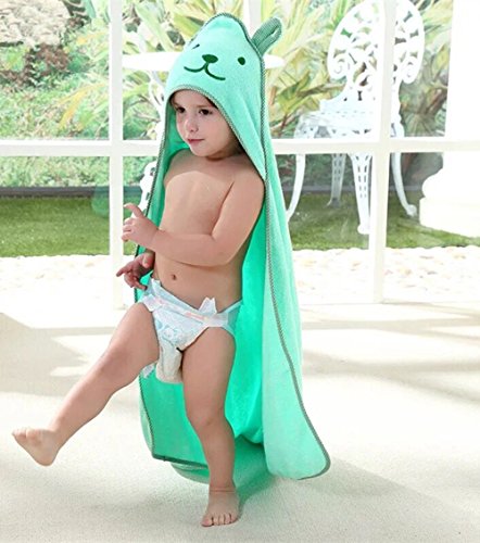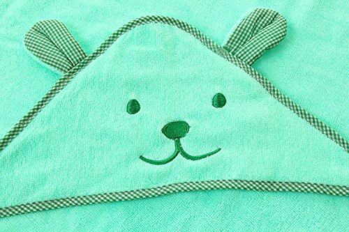 Kids hooded Bath/ Beach Towel with Bear Ear, 100%Cotton, Soft and Cute,Colors Blue, Green, Yellow, Pink,Good Gift for your Children (Green)